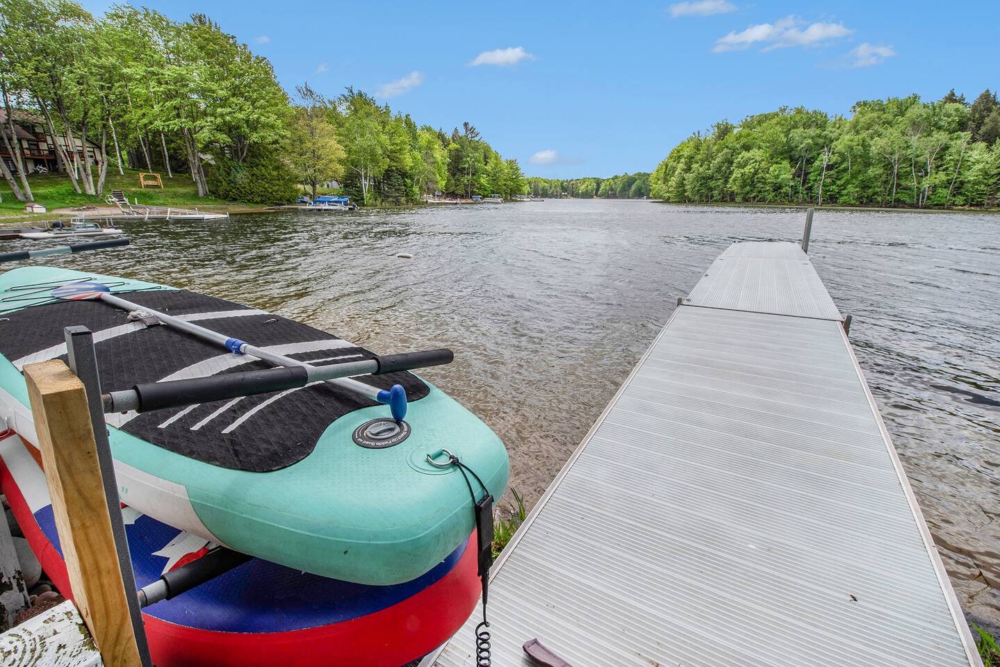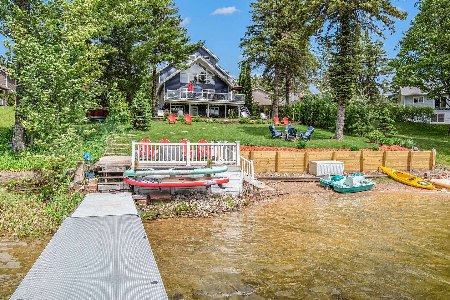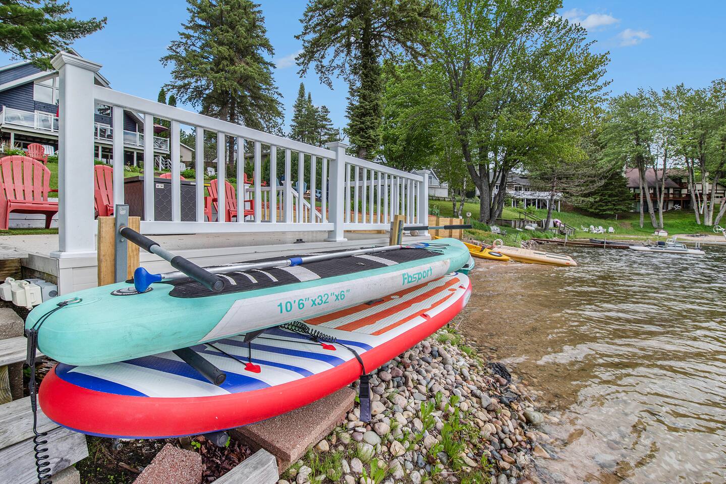 *Check out our floor plans at the end of the photo section. ***What sets us apart*** - 5-star hospitality, as shown by host's 550+ 5 star reviews - Response within minutes, not hours :) - Hot tub that fits 6+ and a brand new barrel sauna with electric heater that fits 6 - Premium & sustainable personal care products from Public Goods - High cleaning standards - Quality and comfortable bedding and towels - Beautiful, private sandy beach that gradually eases into the lake -> perform for swim & kiddo friendly (comes with row boat, paddle boat, kayaks, boat dock, swimming platform) - An unbeatable location to relax by the beautiful Big Lake, with easy access to the best of Northern Michigan ***Overview*** Welcome to our stunning lakefront haven in Northern Michigan, the perfect getaway for large groups and family gatherings. This expansive 6 bedroom, 6 bathroom house, boasting an indoor space of nearly 7,000 sqft plus a spacious lakefront lawn, comfortably accommodates with 11 beds, making it ideal for reunions, retreats, or a luxurious escape with friends. Embark on your dream vacation in this beautiful lakefront house, where every detail is curated for your comfort and enjoyment. Book your stay today and experience the ultimate group getaway! ***Key Features*** Bedrooms & Bathrooms: Each bedroom is a serene retreat, featuring high-quality linens and private bathrooms stocked with premium personal care products from Public Goods. World-Class Amenities: Relax in our spacious hot tub, large enough for 6+ people, or gather around the outdoor fire pit. Enjoy our double decks with plenty of comfortable seating, offering breathtaking views of Big Lake. Make your favorite dishes in our 2 fully-equipped kitchen with 3 ovens. Entertainment Galore: Our house boasts an array of entertainment options including 3 cozy fireplaces, a dedicated board game loft, a wet bar, an expansive game room with arcades, pool table, foosball table, poker table, darts, and more. For those fitness enthusiasts, we even have a lake-facing exercise area with free weights, yoga mats, and a Peloton bike+. Outdoor Adventures: With numerous boats and kayaks available, explore the tranquil waters of Big Lake. Alternatively, sit around the lakeside fire pit or play some of the most popular outdoor games, e.g., corn hole. Prime Location: Situated in the heart of Northern Michigan, our home serves as the perfect launch pad for skiing, golfing, dining, shopping, and exploring nature trails. ***The Experience*** Tastefully decorated with a keen eye for comfort and style, our lakefront house promises an unforgettable experience. Whether it's a day out on the lake, an evening of games and laughter, or a night under the stars, every moment here is a memory in the making. ***Ideal for Every Season*** Summer: Enjoy the lake, go hiking, or have a BBQ on the deck. Winter: Cozy up by the fireplaces, soak in the hot tub, hit nearby ski slopes, or enjoy the winter scenery. Spring/Fall: Witness nature's beauty with scenic trails and outdoor activities. ***Close to Everything*** Our location ensures easy access to the best of Northern Michigan. Discover local restaurants, charming shops, and exciting recreational activities all within reach.