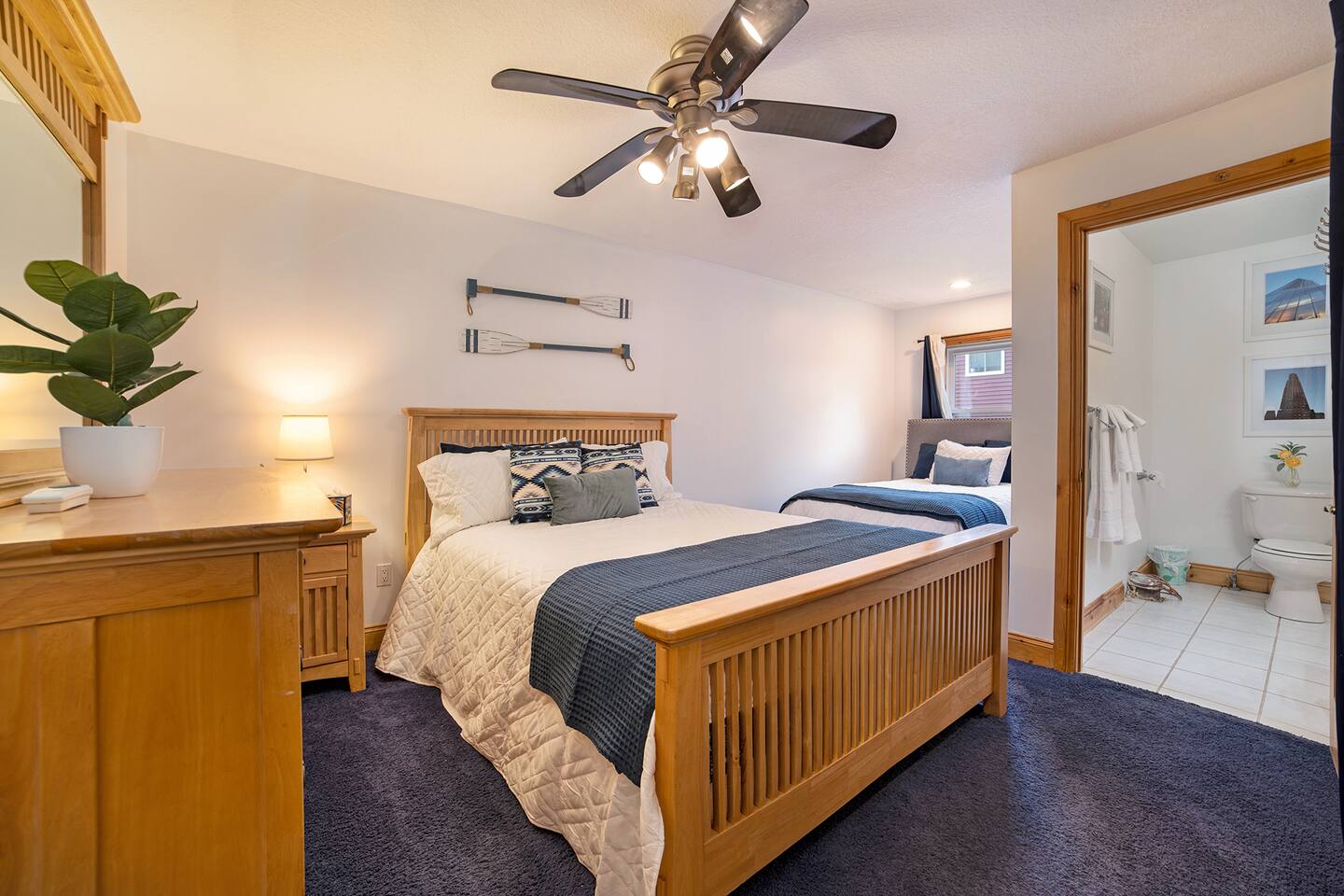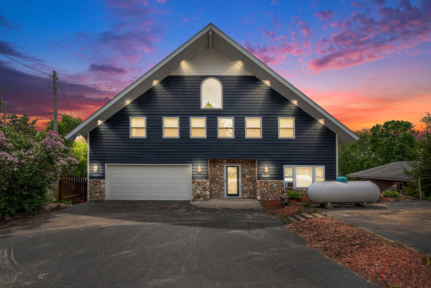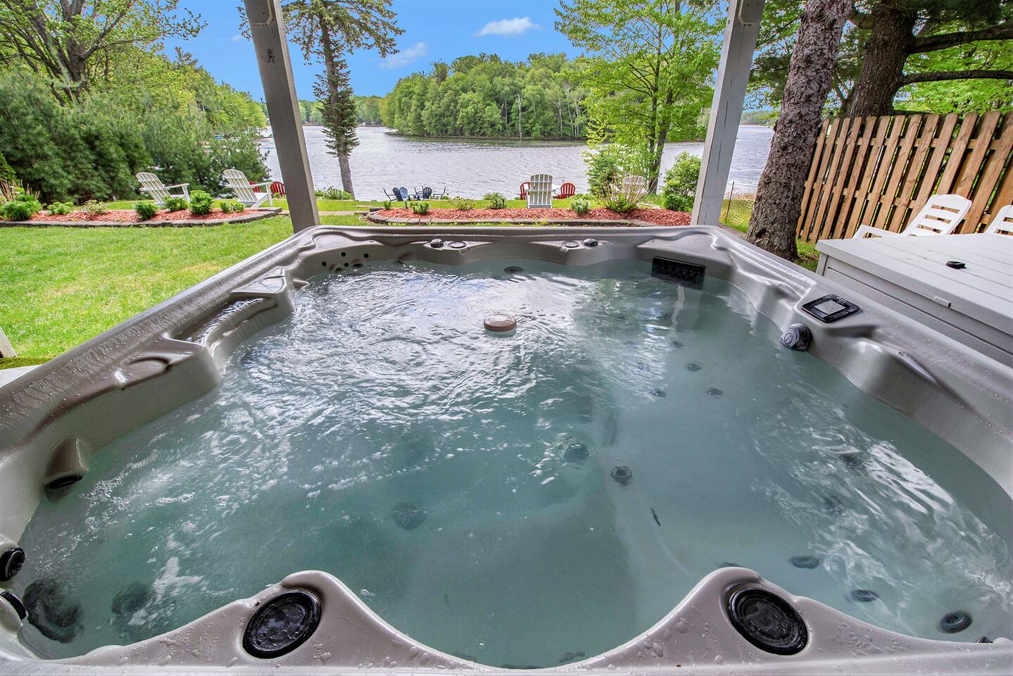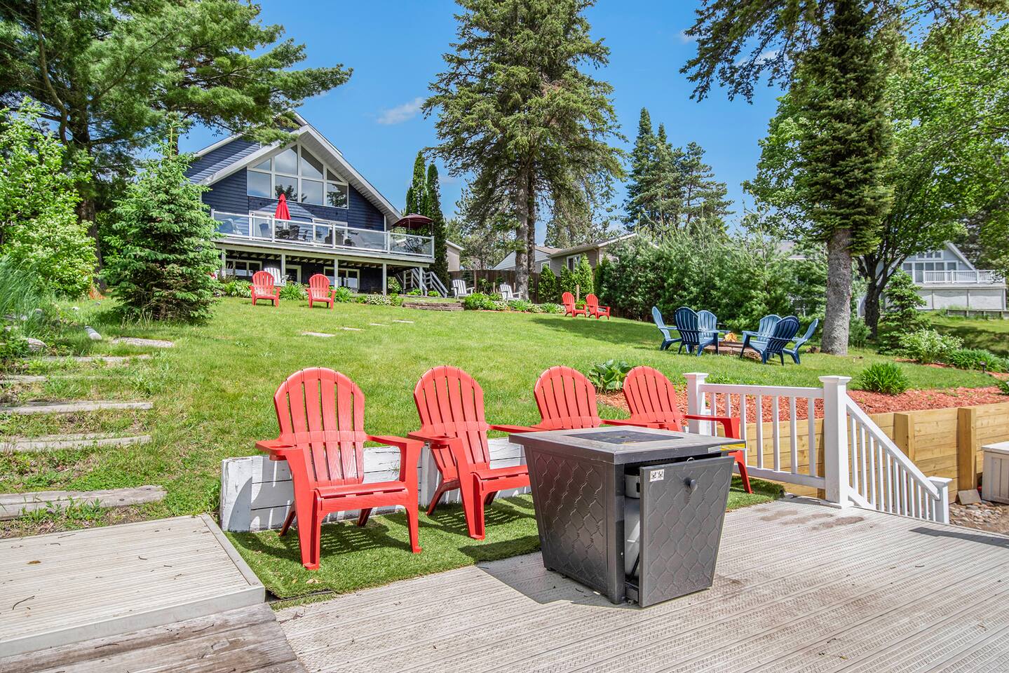 *Check out our floor plans at the end of the photo section. ***What sets us apart*** - 5-star hospitality, as shown by host's 550+ 5 star reviews - Response within minutes, not hours :) - Hot tub that fits 6+ and a brand new barrel sauna with electric heater that fits 6 - Premium & sustainable personal care products from Public Goods - High cleaning standards - Quality and comfortable bedding and towels - Beautiful, private sandy beach that gradually eases into the lake -> perform for swim & kiddo friendly (comes with row boat, paddle boat, kayaks, boat dock, swimming platform) - An unbeatable location to relax by the beautiful Big Lake, with easy access to the best of Northern Michigan ***Overview*** Welcome to our stunning lakefront haven in Northern Michigan, the perfect getaway for large groups and family gatherings. This expansive 6 bedroom, 6 bathroom house, boasting an indoor space of nearly 7,000 sqft plus a spacious lakefront lawn, comfortably accommodates with 11 beds, making it ideal for reunions, retreats, or a luxurious escape with friends. Embark on your dream vacation in this beautiful lakefront house, where every detail is curated for your comfort and enjoyment. Book your stay today and experience the ultimate group getaway! ***Key Features*** Bedrooms & Bathrooms: Each bedroom is a serene retreat, featuring high-quality linens and private bathrooms stocked with premium personal care products from Public Goods. World-Class Amenities: Relax in our spacious hot tub, large enough for 6+ people, or gather around the outdoor fire pit. Enjoy our double decks with plenty of comfortable seating, offering breathtaking views of Big Lake. Make your favorite dishes in our 2 fully-equipped kitchen with 3 ovens. Entertainment Galore: Our house boasts an array of entertainment options including 3 cozy fireplaces, a dedicated board game loft, a wet bar, an expansive game room with arcades, pool table, foosball table, poker table, darts, and more. For those fitness enthusiasts, we even have a lake-facing exercise area with free weights, yoga mats, and a Peloton bike+. Outdoor Adventures: With numerous boats and kayaks available, explore the tranquil waters of Big Lake. Alternatively, sit around the lakeside fire pit or play some of the most popular outdoor games, e.g., corn hole. Prime Location: Situated in the heart of Northern Michigan, our home serves as the perfect launch pad for skiing, golfing, dining, shopping, and exploring nature trails. ***The Experience*** Tastefully decorated with a keen eye for comfort and style, our lakefront house promises an unforgettable experience. Whether it's a day out on the lake, an evening of games and laughter, or a night under the stars, every moment here is a memory in the making. ***Ideal for Every Season*** Summer: Enjoy the lake, go hiking, or have a BBQ on the deck. Winter: Cozy up by the fireplaces, soak in the hot tub, hit nearby ski slopes, or enjoy the winter scenery. Spring/Fall: Witness nature's beauty with scenic trails and outdoor activities. ***Close to Everything*** Our location ensures easy access to the best of Northern Michigan. Discover local restaurants, charming shops, and exciting recreational activities all within reach.
