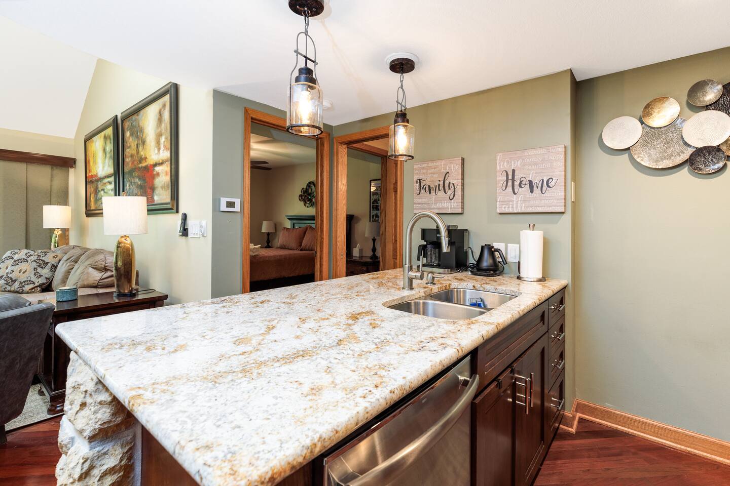GALENA TERRITORY: Guests will have access to the resort-style amenities offered at the Territory, including - Owner's Club (business center, indoor/outdoor swimming pools, game room, fitness center, gymnasium, tennis courts, basketball court, pickle ball court, marina, etc.) - Over 25 miles of trails - Thunder Bay Falls - Lake Galena (boat and kayak rentals, fishing) - Shenandoah Riding Center AREA: you are only 12 minutes away from the town of Galena, where you can find many restaurants, art galleries, and boutique stores. 22 minutes to the Chestnut Mountain Resort for skiing/snowboarding or summer outdoor activities. 30 minutes to Dubuque where you can find popular chain stores. Within a 30 minutes radius, you can find 8+ golf courses, numerous breweries, wineries, bike trails, and state parks. * The townhome is in a quiet and secluded community area, so no parties, no events, nor loud noises.